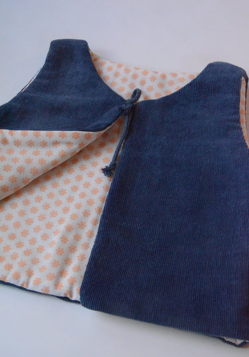 Chaque pièce est unique : réalisée à partir de tissus de seconde main et cousue à la main au Pays Basque, pour apprendre à consommer autrement dès le plus jeune âge !